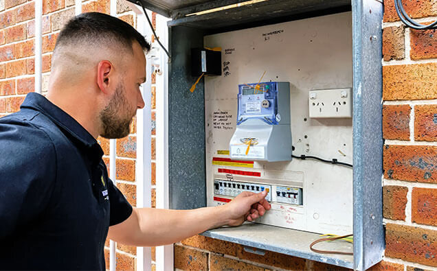 Common signs include frequent circuit breaker trips, flickering lights, buzzing sounds from the switchboard, fuses that regularly blow, a lack of safety switches, or an old ceramic fuse box. If your home was built before 1990 or you’re installing new appliances like air conditioning or an electric vehicle charger, you likely need an upgrade. Our electricians can assess your current switchboard and recommend appropriate solutions.